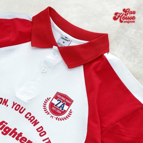 Mẫu áo đồng phục lớp 4 phối đỏ – trắng – tím than của Gạo House như một bức tranh đầy màu sắc, mang đến cho các bé một diện mạo thật đáng yêu và nổi bật. Sự kết hợp hài hòa giữa ba màu sắc tươi tắn không chỉ tạo nên điểm nhấn ấn tượng mà còn giúp các bé thêm tự tin và năng động. Hình in logo tinh xảo được đặt ngay ngắn ở vị trí trung tâm càng làm tăng thêm vẻ đẹp và sự chuyên nghiệp cho chiếc áo.
