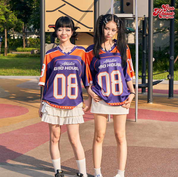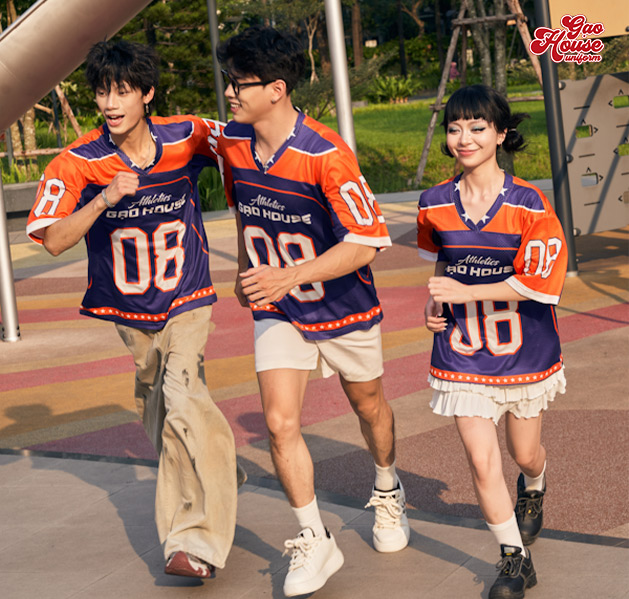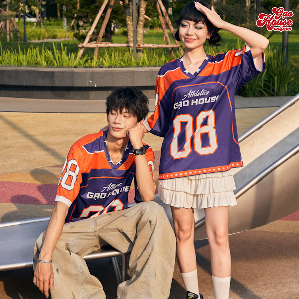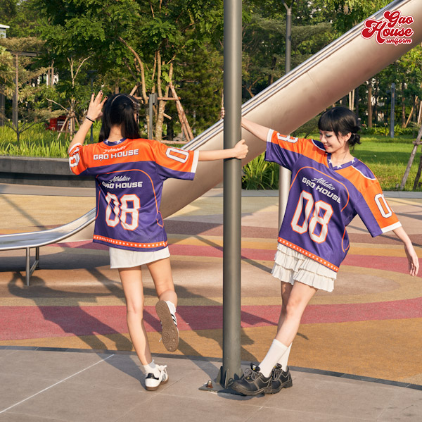 Không chỉ là một mẫu đồng phục, áo đồng phục lớp tím – cam Gạo House là cú “mix màu” táo bạo khiến cả team trông như bước ra từ sàn diễn streetwear thực thụ. Tím mang vibe sáng tạo và khác biệt, cam lại là gam màu của năng lượng và tự tin, hai sắc độ ấy hòa vào nhau tạo nên chiếc áo vừa nổi bật, vừa mang tinh thần bứt phá chuẩn Gen Z. Diện lên là “bật mood”, đứng vào khung hình là sáng bừng cả team!