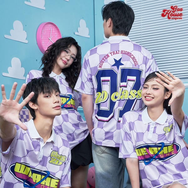 BST Áo Lớp Polo Caro Tím Thời Trang Retro Học Đường