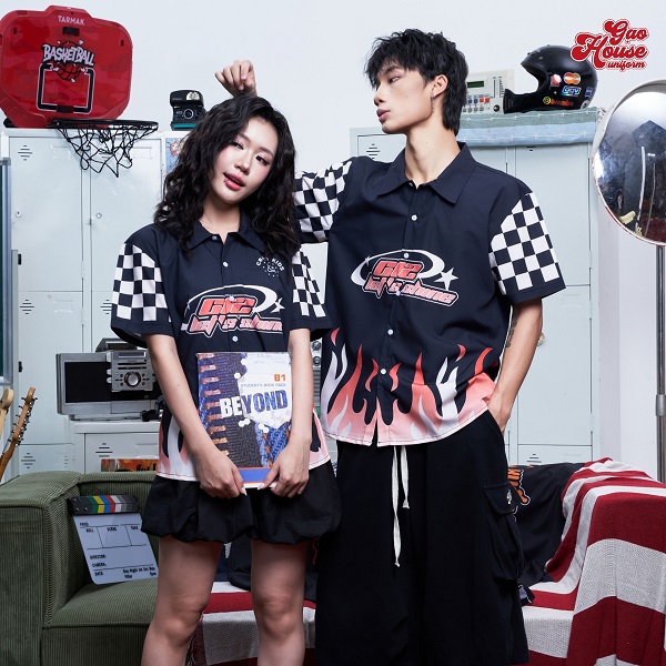 Đồng Phục Áo Sơ Mi Lớp Họa Tiết Caro Phối Lửa Bắt Mắt