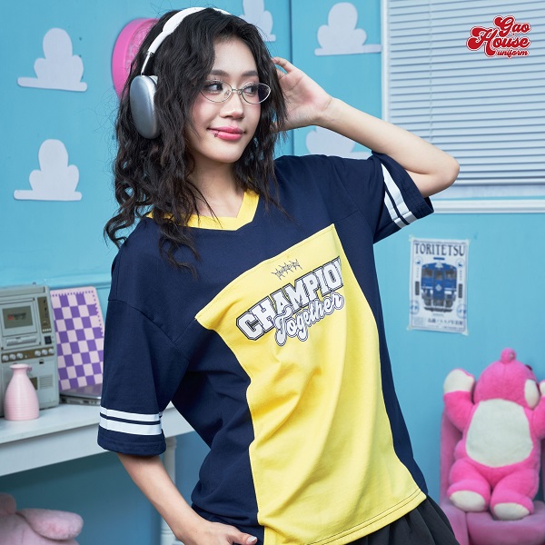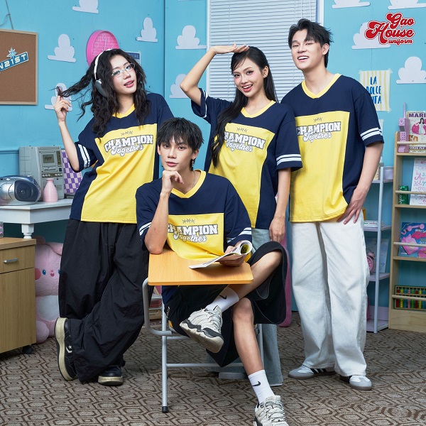 Mẫu Áo Phông Lớp Cổ V Màu Vàng Phối Xanh Đẹp Trẻ Trung